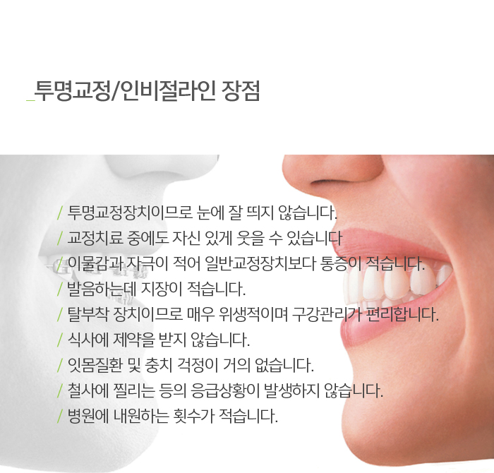 치아교정 > 투명교정/인비절라인